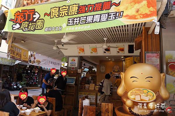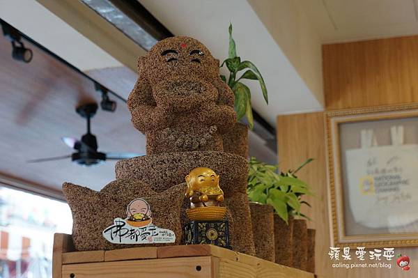 店門口也有一尊大大的Q版佛像,