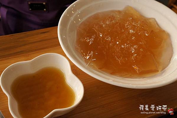 可以先品嚐愛玉的原味再加料進去。