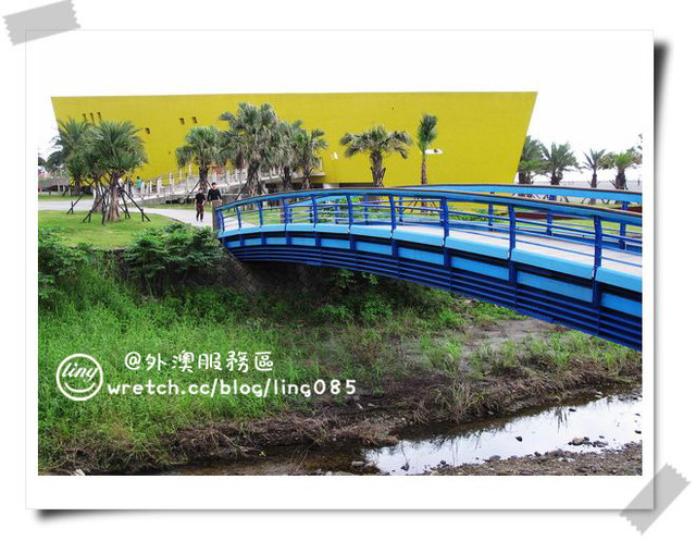 一旁的藍色橋樑,